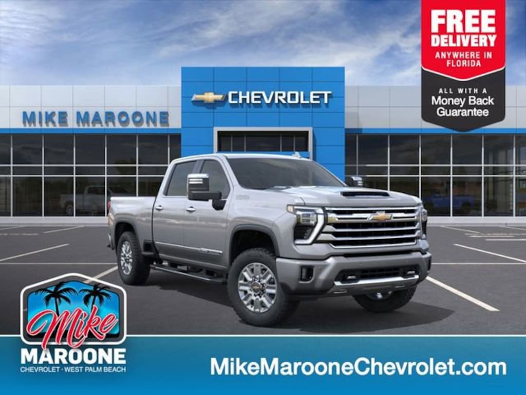 MIKE MAROONE CHEVROLET CERTIFIED, BLUETOOTH, BACKUP CAMERA, FRESHLY SERVICED, NEW TIRES, NEW BRAKES, FREE FLORIDA DELIVERY, POWER SEATS, ICE COLD A/C, 10-Speed Automatic, 4WD, Black Leather. 2026 Chevrolet Silverado 2500HD High Country 4WD 10-Speed Automatic Duramax 6.6L V8 Turbodiesel Sterling Gray Metallic