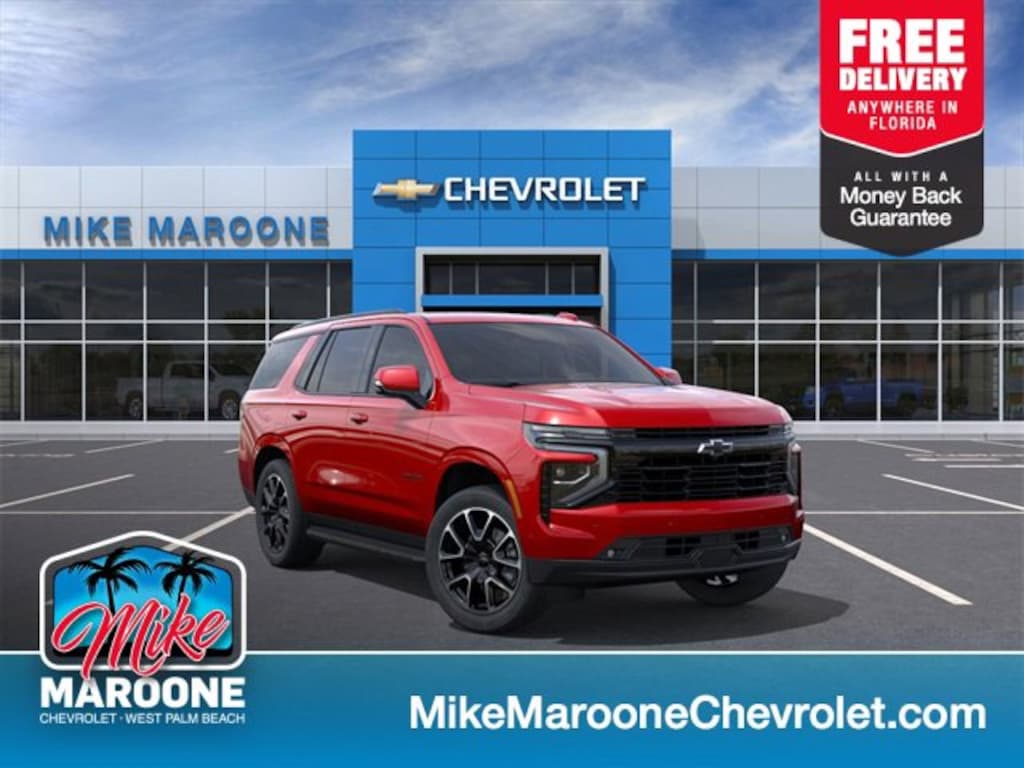 Jet Black / Victory Red Leather. 2026 Chevrolet Tahoe RST RWD 10-Speed Automatic with Overdrive EcoTec3 5.3L V8 Radiant Red TintcoatMike Maroone Chevrolet West Palm Beach strives to give you an up front and transparent buying experience when purchasing new and pre-owned vehicles. As a family owned and operated new and used car dealership that has served the South Florida community for more than 50 years, Mike Maroone Chevrolet West Palm Beach has decades of experience in providing superior customer service. Dealer sets actual price. Quoted price subject to change without notice to correct errors or omissions. New vehicle pricing may already include applicable manufacturer incentives which may expire at any time and are subject to incentive qualification criteria and requirements, and which may be contingent upon manufacturer finance company approval. Manufacturer incentive data and vehicle features is provided by third parties and believed to be accurate as of the time of publication. Dealer sets actual price. Accessories and color may vary. Quoted price subject to change without notice to correct errors or omissions. Dealer handling fee of $995 is not included in quoted price. Tax, tag, and electronic registration fee of $399 are not included. Vehicles 10 years old or 150,000 miles or more are offered As-Is with no warranty implied.