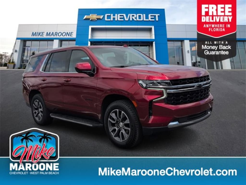 **FREE DELIVERY ANYWHERE IN FLORIDA**, 1 FREE MONTH ONSTAR (IF EQUIPPED)**, 3 FREE MONTHS XM RADIO (IF EQUIPPED)**, 3RD ROW SEATING**, 5.3L V8 ENGINE**, APPLE CARPLAY**, ANDROID AUTO**, AIR CONDITIONING**, BLUETOOTH - HANDS FREE**, CERTIFIED 1 OWNER VEHICLE**, CLEAN CARFAX - NO ACCIDENTS REPORTED**, 2ND ROW USB CHARGE PORT**, FRESH OIL & FILTER CHANGE**, MP3- USB- AUX PORT**, PASSIVE ENTRY SYSTEM**, KEYLESS OPEN**, KEYLESS START**, KEYLESS ENTRY**, CRUISE CONTROL**, POWER WINDOWS**, POWER LOCKS**, POWER SEAT**, REAR BACK UP CAMERA**, SERVICE RECORDS AVAILABLE**, STEERING WHEEL AUDIO CONTROLS**, TIRE PRESSURE MONITOR SYSTEM**, Jet Black Cloth. 2022 Chevrolet Tahoe LS RWD Cherry Red Tintcoat Recent Arrival! Certified. Certification Program Details: This TAHOE also comes with the FULL Mike Maroone 60-Day 3,000 Mile Warranty. We will review the technician's vehicle inspection report with you before purchase. Our intention is to provide you a completely transparent buying experience. At Mike Maroone our used vehicles are Safety Checked, Warrantied, CARFAX, and if you don't like it ... Bring it back! All of our new and used vehicles come with the Mike Maroone Preferred Owner Advantages listed below: - MARKET BASED PRICING - 3 DAY/150 MILE MONEY BACK GUARANTEE - FREE LOANERS FOR SERVICE GUESTS WHO SET AN ONLINE APPOINTMENT - 12 MONTH/12K MILE SERVICE/COLLISION GUARANTEE - 60 DAY LIMITED POWERTRAIN PRE-OWNED VEHICLE WARRANTY - MILITARY DEPLOYMENT BUYBACK GUARANTEE - FREE DELIVERY ANYWHERE IN FLORIDA For more information or vehicles like it, stop by Mike Maroone Chevrolet West Palm Beach today.