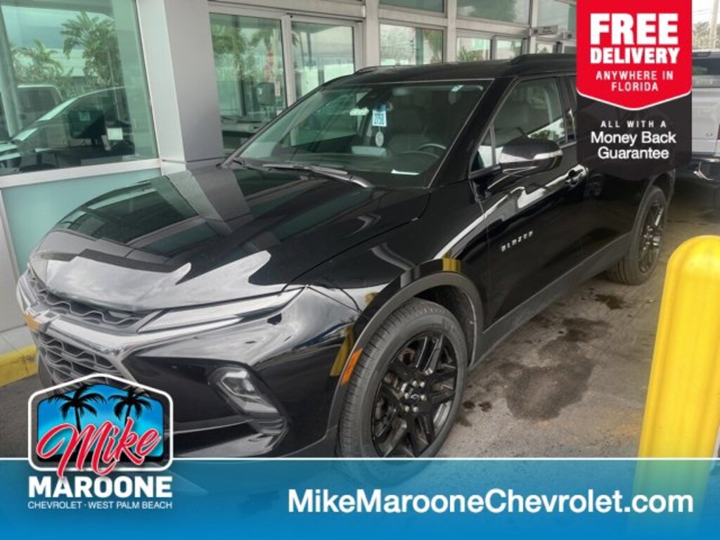 MIKE MAROONE CHEVROLET CERTIFIED, BLUETOOTH, BACKUP CAMERA, FRESHLY SERVICED, NEW TIRES, NEW BRAKES, FREE FLORIDA DELIVERY, POWER SEATS, ICE COLD A/C. 2023 Chevrolet Blazer LT FWD Black Recent Arrival! Odometer is 540 miles below market average! Certified. Chevrolet Certified Pre-Owned Details:* Vehicle History* 172 Point Inspection* Transferable Warranty* Roadside Assistance* Warranty Deductible: $0* 24 months/24,000 miles (whichever comes first) Certified Pre-Owned Scheduled Maintenance Plan and 3 days/150 miles (whichever comes first) Vehicle Exchange Program. SiriusXM 3-month trial subscription.* Limited Warranty: 12 Month/12,000 Mile (whichever comes first) from certified purchase date* Powertrain Limited Warranty: 72 Month/100,000 Mile (whichever comes first) from original in-service dateMike Maroone Chevrolet West Palm Beach strives to give you an up front and transparent buying experience when purchasing new and pre-owned vehicles. As a family owned and operated new and used car dealership that has served the South Florida community for more than 50 years, Mike Maroone Chevrolet West Palm Beach has decades of experience in providing superior customer service. Dealer sets actual price. Quoted price subject to change without notice to correct errors or omissions. New vehicle pricing may already include applicable manufacturer incentives which may expire at any time and are subject to incentive qualification criteria and requirements, and which may be contingent upon manufacturer finance company approval. Manufacturer incentive data and vehicle features is provided by third parties and believed to be accurate as of the time of publication. Dealer sets actual price. Accessories and color may vary. Quoted price subject to change without notice to correct errors or omissions. Dealer handling fee of $995 is not included in quoted price. Tax, tag, and electronic registration fee of $399 are not included. Vehicles 10 years old or 150,000 miles or more are offered As-Is with no warranty implied.