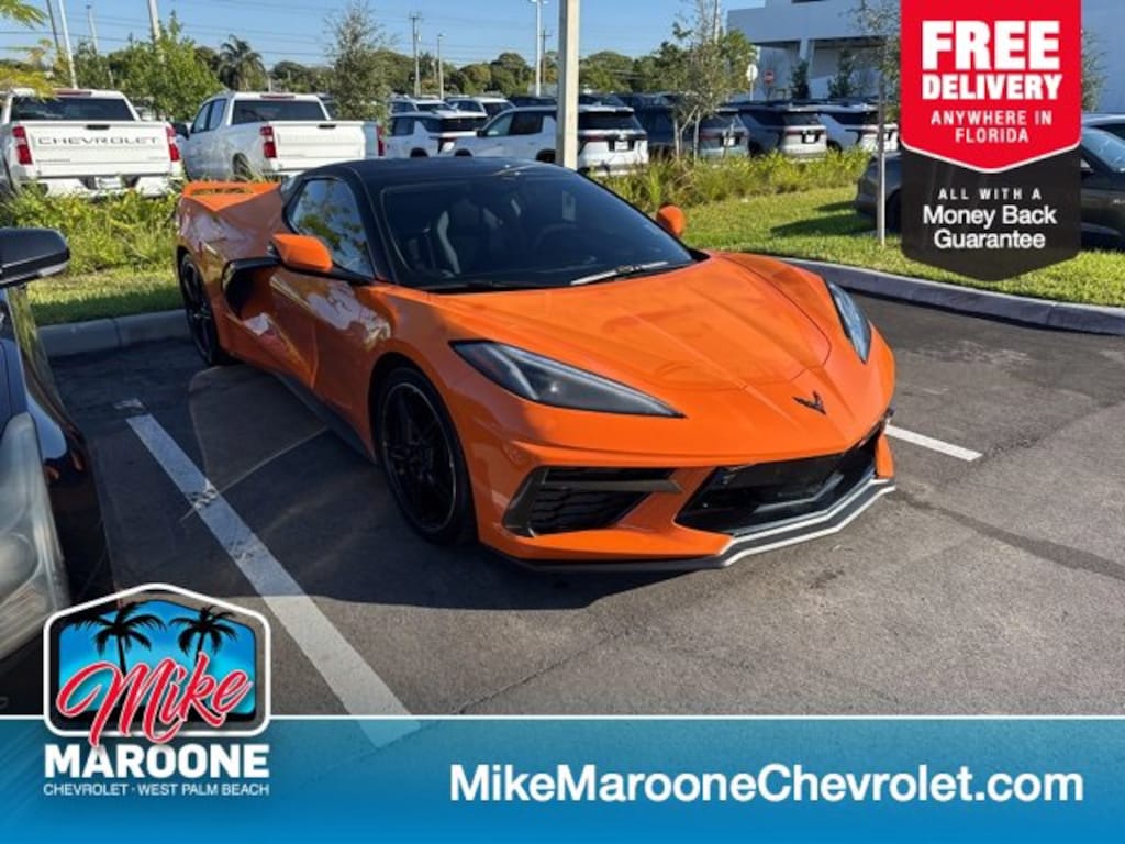 2023 Chevrolet Corvette Stingray RWD Amplify Orange Tintcoat Recent Arrival! Odometer is 6354 miles below market average!Mike Maroone Chevrolet West Palm Beach strives to give you an up front and transparent buying experience when purchasing new and pre-owned vehicles. As a family owned and operated new and used car dealership that has served the South Florida community for more than 50 years, Mike Maroone Chevrolet West Palm Beach has decades of experience in providing superior customer service. Dealer sets actual price. Quoted price subject to change without notice to correct errors or omissions. New vehicle pricing may already include applicable manufacturer incentives which may expire at any time and are subject to incentive qualification criteria and requirements, and which may be contingent upon manufacturer finance company approval. Manufacturer incentive data and vehicle features is provided by third parties and believed to be accurate as of the time of publication. Dealer sets actual price. Accessories and color may vary. Quoted price subject to change without notice to correct errors or omissions. Dealer handling fee of $995 is not included in quoted price. Tax, tag, and electronic registration fee of $399 are not included. Vehicles 10 years old or 150,000 miles or more are offered As-Is with no warranty implied.