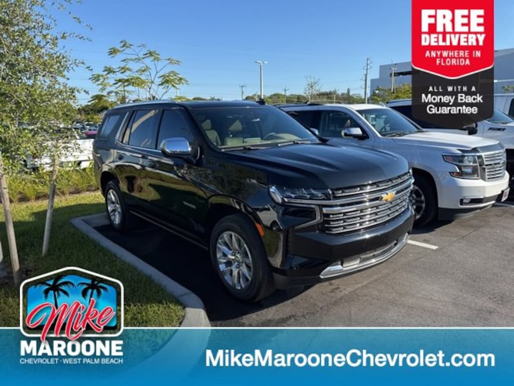 Jet Black/Maple Sugar Leather. 2023 Chevrolet Tahoe Premier RWD Black Recent Arrival! Odometer is 6745 miles below market average! Certified. Chevrolet Certified Pre-Owned Details:* Warranty Deductible: $0* Powertrain Limited Warranty: 72 Month/100,000 Mile (whichever comes first) from original in-service date* Roadside Assistance* 24 months/24,000 miles (whichever comes first) Certified Pre-Owned Scheduled Maintenance Plan and 3 days/150 miles (whichever comes first) Vehicle Exchange Program. SiriusXM 3-month trial subscription.* Vehicle History* Limited Warranty: 12 Month/12,000 Mile (whichever comes first) from certified purchase date* Transferable Warranty* 172 Point InspectionMike Maroone Chevrolet West Palm Beach strives to give you an up front and transparent buying experience when purchasing new and pre-owned vehicles. As a family owned and operated new and used car dealership that has served the South Florida community for more than 50 years, Mike Maroone Chevrolet West Palm Beach has decades of experience in providing superior customer service. Dealer sets actual price. Quoted price subject to change without notice to correct errors or omissions. New vehicle pricing may already include applicable manufacturer incentives which may expire at any time and are subject to incentive qualification criteria and requirements, and which may be contingent upon manufacturer finance company approval. Manufacturer incentive data and vehicle features is provided by third parties and believed to be accurate as of the time of publication. Dealer sets actual price. Accessories and color may vary. Quoted price subject to change without notice to correct errors or omissions. Dealer handling fee of $995 is not included in quoted price. Tax, tag, and electronic registration fee of $399 are not included. Vehicles 10 years old or 150,000 miles or more are offered As-Is with no warranty implied.