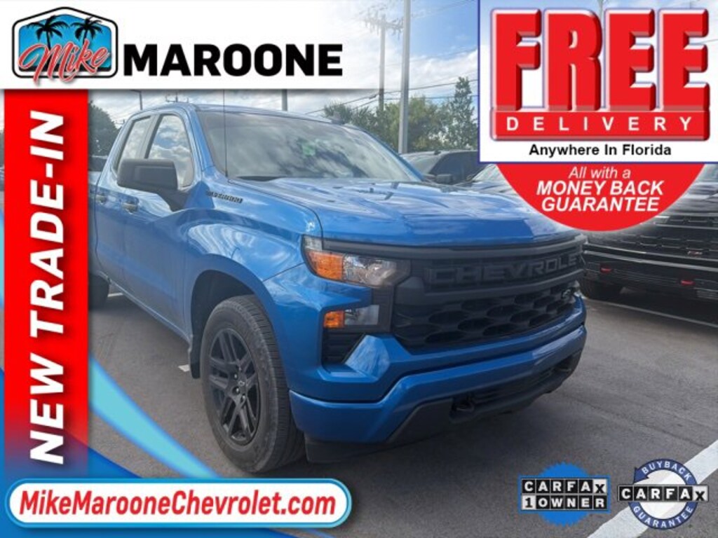**CHEVROLET CERTIFIED**, 100,000 MILE WARRANTY**, 172 POINT CHEVROLET CERTIFIED INSPECTION**, FREE DELIVERY ANYWHERE IN FLORIDA**, 1 FREE MONTH ONSTAR (IF EQUIPPED)**, 3 FREE MONTHS XM RADIO (IF EQUIPPED)**, APPLE CARPLAY**, ANDROID AUTO**, AIR CONDITIONING**, BLUETOOTH - HANDS FREE**, CLEAN CARFAX - NO ACCIDENTS REPORTED**, FRESH OIL & FILTER CHANGE**, MP3- USB- AUX PORT**, PASSIVE ENTRY SYSTEM**, KEYLESS OPEN**, KEYLESS START**, KEYLESS ENTRY**, CRUISE CONTROL**, POWER WINDOWS**, POWER LOCKS**, REAR BACK UP CAMERA**, SERVICE RECORDS AVAILABLE**, STEERING WHEEL AUDIO CONTROLS**, TIRE PRESSURE MONITOR SYSTEM**, 8-Speed Automatic, Black Cloth. 2024 Chevrolet Silverado 1500 Custom RWD Glacier Blue Metallic Recent Arrival! Certified. Chevrolet Certified Pre-Owned Details:* 24 months/24,000 miles (whichever comes first) Certified Pre-Owned Scheduled Maintenance Plan and 3 days/150 miles (whichever comes first) Vehicle Exchange Program. SiriusXM 3-month trial subscription.* Warranty Deductible: $0* Roadside Assistance* Limited Warranty: 12 Month/12,000 Mile (whichever comes first) from certified purchase date* 172 Point Inspection* Transferable Warranty* Vehicle History* Powertrain Limited Warranty: 72 Month/100,000 Mile (whichever comes first) from original in-service dateMike Maroone Chevrolet West Palm Beach strives to give you an up front and transparent buying experience when purchasing new and pre-owned vehicles. As a family owned and operated new and used car dealership that has served the South Florida community for more than 50 years, Mike Maroone Chevrolet West Palm Beach has decades of experience in providing superior customer service. Dealer sets actual price. Quoted price subject to change without notice to correct errors or omissions. New vehicle pricing may already include applicable manufacturer incentives which may expire at any time and are subject to incentive qualification criteria and requirements, and which may be contingent upon manufacturer finance company approval. Manufacturer incentive data and vehicle features is provided by third parties and believed to be accurate as of the time of publication. Dealer sets actual price. Accessories and color may vary. Quoted price subject to change without notice to correct errors or omissions. Dealer handling fee of $995 is not included in quoted price. Tax, tag, and electronic registration fee of $399 are not included. Vehicles 10 years old or 150,000 miles or more are offered As-Is with no warranty implied.