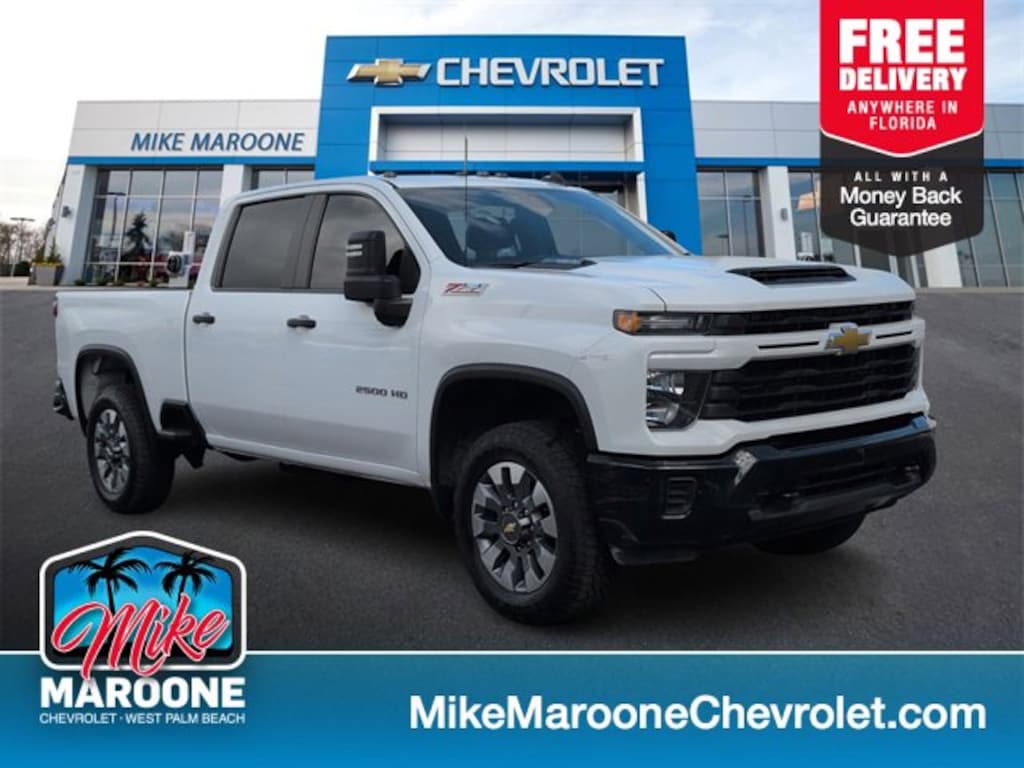 10-Speed Automatic, 4WD, Black Cloth. 2024 Chevrolet Silverado 2500HD Custom 4WD Summit White Recent Arrival! Certified. Certification Program Details: This {Model} also comes with the FULL Mike Maroone 60-Day 3,000 Mile Warranty. We will review the technicianâs vehicle inspection report with you before purchase. Our intention is to provide you a completely transparent buying experience. At Mike Maroone our used vehicles are Safety Checked, Warrantied, CARFAX, and if you donât like it ... Bring it back! All of our new and used vehicles come with the Mike Maroone Preferred Owner Advantages listed below: - MARKET BASED PRICING - 3 DAY/150 MILE MONEY BACK GUARANTEE - FREE LOANERS FOR SERVICE GUESTS WHO SET AN ONLINE APPOINTMENT - 12 MONTH/12K MILE SERVICE/COLLISION GUARANTEE - 60 DAY LIMITED POWERTRAIN PRE-OWNED VEHICLE WARRANTY - MILITARY DEPLOYMENT BUYBACK GUARANTEE - FREE DELIVERY ANYWHERE IN FLORIDA For more information or vehicles like it, stop by Mike Maroone Chevrolet West Palm Beach today.