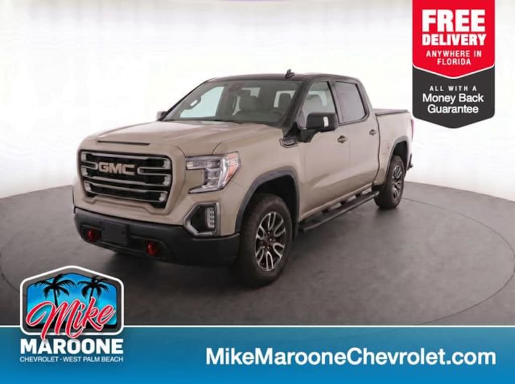 MIKE MAROONE CHEVROLET CERTIFIED, BLUETOOTH, BACKUP CAMERA, FRESHLY SERVICED, NEW TIRES, NEW BRAKES, FREE FLORIDA DELIVERY, POWER SEATS, ICE COLD A/C, 10-Speed Automatic, 4WD, Jet Black With Kalahari Accents Leather. 2021 GMC Sierra 1500 AT4 4WD Ebony Twilight Metallic Recent Arrival! Certified. Certification Program Details: This vehicle also comes with the FULL Mike Maroone 60-Day 3,000 Mile Warranty. We will review the technicianâs vehicle inspection report with you before purchase. Our intention is to provide you a completely transparent buying experience. At Mike Maroone our used vehicles are Safety Checked, Warrantied, CARFAX, and if you donât like it ... Bring it back! All of our new and used vehicles come with the Mike Maroone Preferred Owner Advantages listed below: - MARKET BASED PRICING - 3 DAY/150 MILE MONEY BACK GUARANTEE - FREE LOANERS FOR SERVICE GUESTS WHO SET AN ONLINE APPOINTMENT - 12 MONTH/12K MILE SERVICE/COLLISION GUARANTEE - 60 DAY LIMITED POWERTRAIN PRE-OWNED VEHICLE WARRANTY - MILITARY DEPLOYMENT BUYBACK GUARANTEE - FREE DELIVERY ANYWHERE IN FLORIDA For more information or vehicles like it, stop by Mike Maroone Chevrolet West Palm Beach today.Mike Maroone Chevrolet West Palm Beach strives to give you an up front and transparent buying experience when purchasing new and pre-owned vehicles. As a family owned and operated new and used car dealership that has served the South Florida community for more than 50 years, Mike Maroone Chevrolet West Palm Beach has decades of experience in providing superior customer service. Dealer sets actual price. Quoted price subject to change without notice to correct errors or omissions. New vehicle pricing may already include applicable manufacturer incentives which may expire at any time and are subject to incentive qualification criteria and requirements, and which may be contingent upon manufacturer finance company approval. Manufacturer incentive data and vehicle features is provided by third parties and believed to be accurate as of the time of publication. Dealer sets actual price. Accessories and color may vary. Quoted price subject to change without notice to correct errors or omissions. Dealer handling fee of $995 is not included in quoted price. Tax, tag, and electronic registration fee of $399 are not included. Vehicles 10 years old or 150,000 miles or more are offered As-Is with no warranty implied.