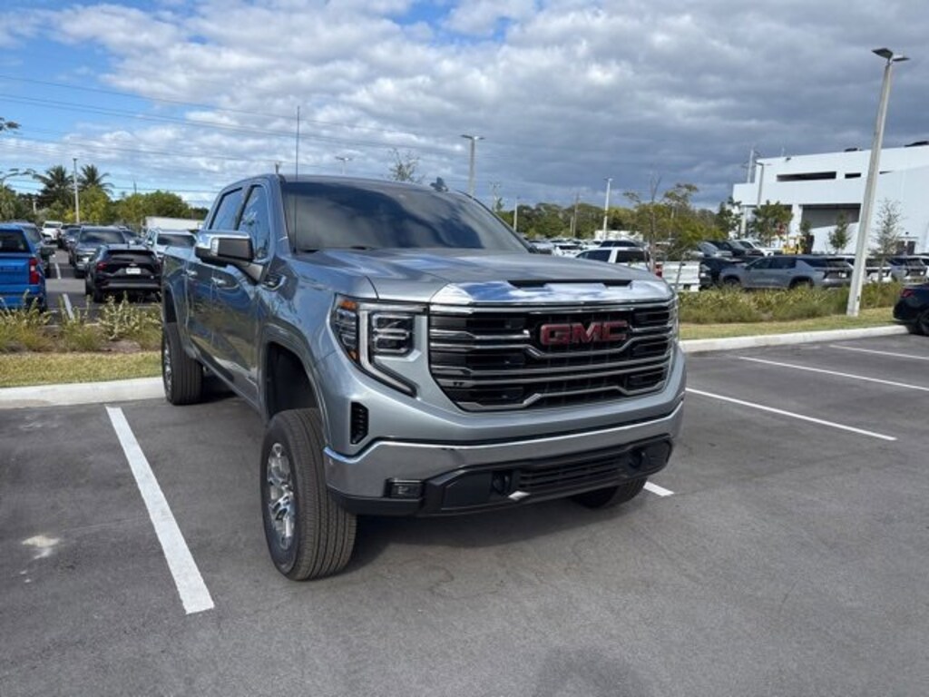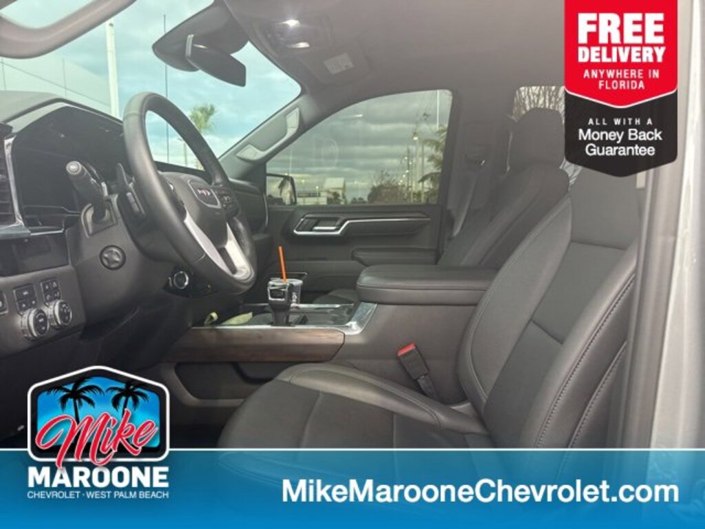 MIKE MAROONE CHEVROLET CERTIFIED, BLUETOOTH, BACKUP CAMERA, FRESHLY SERVICED, NEW TIRES, NEW BRAKES, FREE FLORIDA DELIVERY, POWER SEATS, ICE COLD A/C, 10-Speed Automatic, 4WD, Black Leather, 120-Volt Bed Mounted Power Outlet, 120-Volt Interior Power Outlet, 170 Amp Alternator, 2 Charge/Data USB Ports, 2 Charge/Data USB Ports Inside Center Console, 2 Type-C Charge-Only Rear USB Ports, 6-Speaker Audio System Feature, Adaptive Cruise Control, Auto-Locking Rear Differential, Auxiliary External Transmission Oil Cooler, Chrome Header & Chrome Grille Insert Bars, Color-Keyed Carpeting Floor Covering, Deep-Tinted Glass, Electric Rear-Window Defogger, Electronic Precision Shift, Floor-Mounted Center Console, Front Bucket Seats, Front Frame-Mounted Black Recovery Hooks, Front Rain-Sensing Wipers, HD Rear Vision Camera, Heated 2nd Row Outboard Seats, Hitch Guidance, Integrated Trailer Brake Controller, Keyless Open & Start, LED Cargo Area Lighting, Manual Tilt-Wheel & Telescoping Steering Column, OnStar Services Capable, Perimeter Lighting, Power Door Locks, Power Front Passenger Windows w/Express Up/Down, Power Front Windows w/Driver Express Up/Down, Power Rake & Telescoping Steering Column, Power Rear Windows w/Express Down, Power Sliding Rear Window w/Rear Defogger, Preferred Equipment Group 4SA, Premium Bose 7-Speaker Sound System, Push Button Start, Rear Wheelhouse Liners, Remote Vehicle Starter System, SiriusXM w/360L Trial Subscription, SLT Convenience Package, SLT Preferred Package, Steering Wheel Audio Controls, Theft Deterrent System (Unauthorized Entry), Trailering Package, Universal Home Remote, Ventilated Driver & Front Passenger Seats, Wi-Fi Hotspot Capable, Wireless Charging. 2025 GMC Sierra 1500 SLT 4WD Sterling Metallic Recent Arrival! Odometer is 5901 miles below market average! Certified. GMC Certified Pre-Owned Details:
