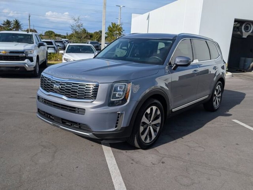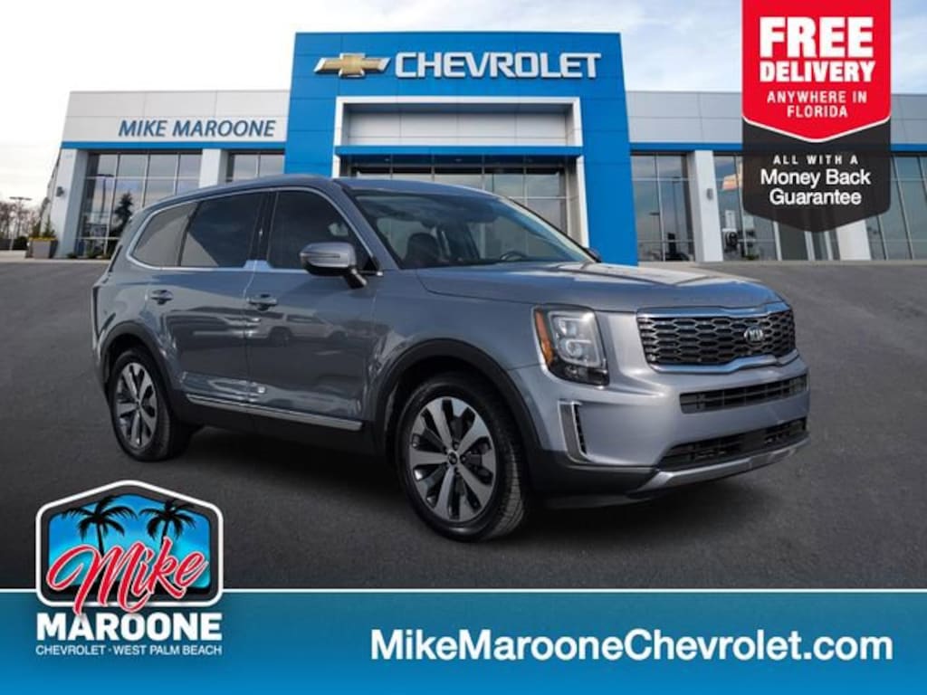 MIKE MAROONE CHEVROLET CERTIFIED, BLUETOOTH, BACKUP CAMERA, FRESHLY SERVICED, NEW TIRES, NEW BRAKES, FREE FLORIDA DELIVERY, POWER SEATS, ICE COLD A/C, 2nd Row Captain Chairs, 3.648 Axle Ratio, 3rd row seats: split-bench, 4-Wheel Disc Brakes, 6 Speakers, ABS brakes, Air Conditioning, Alloy wheels, AM/FM radio: SiriusXM, Apple CarPlay & Android Auto, Auto-dimming Rear-View mirror, Automatic temperature control, Brake assist, Bumpers: body-color, Carpeted Floor Mats, Compass, Delay-off headlights, Driver door bin, Driver vanity mirror, Dual front impact airbags, Dual front side impact airbags, Electronic Stability Control, Emergency communication system: 911 Connect, EX Premium Package, Four wheel independent suspension, Front anti-roll bar, Front Bucket Seats, Front Center Armrest, Front dual zone A/C, Front reading lights, Fully automatic headlights, Heated & Ventilated Front Bucket Seats, Heated door mirrors, Heated front seats, Illuminated entry, Knee airbag, Leather Seat Trim, Leather Shift Knob, Leather steering wheel, LED Headlamps, Low tire pressure warning, Navigation System, Occupant sensing airbag, Outside temperature display, Overhead airbag, Overhead console, Panic alarm, Passenger door bin, Passenger vanity mirror, Power door mirrors, Power driver seat, Power Liftgate, Power moonroof, Power passenger seat, Power steering, Power windows, Radio data system, Radio: AM/FM/SIRIUS Display Audio, Rear air conditioning, Rear anti-roll bar, Rear audio controls, Rear reading lights, Rear seat center armrest, Rear window defroster, Rear window wiper, Reclining 3rd row seat, Remote keyless entry, Roof rack: rails only, Satin Chrome Roof Rails, Security system, Smart Key w/ Push Button and Remote Start, Speed control, Speed-sensing steering, Split folding rear seat, Spoiler, Steering wheel mounted audio controls, Tachometer, Telescoping steering wheel, Tilt steering wheel, Traction control, Trip computer, Turn signal indicator mirrors, Variably intermittent wipers, Ventilated front seats, Wheels: 7.5 x 18 Machined Finish Alloy, Wheels: 7.5 x 20 Machined Finish Alloy. 2021 Kia Telluride EX FWD Everlasting Silver Odometer is 16614 miles below market average!